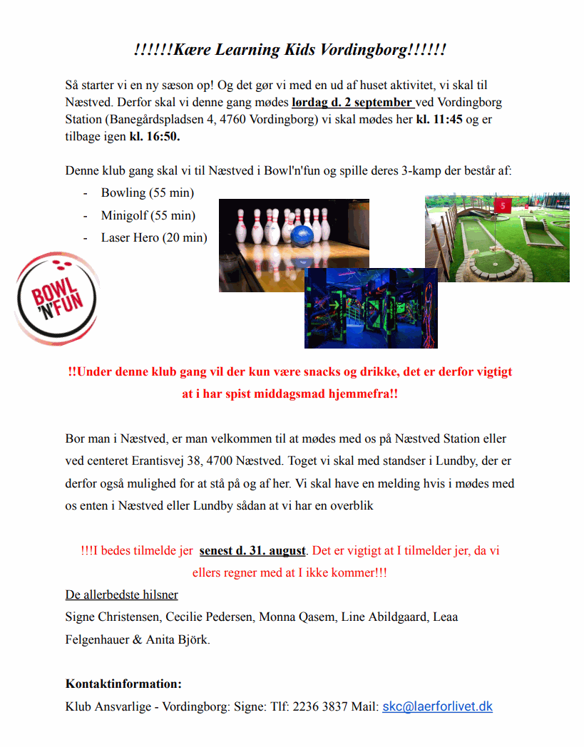 Klubopstart Vordingborg: Bowl'n'fun i Næstved