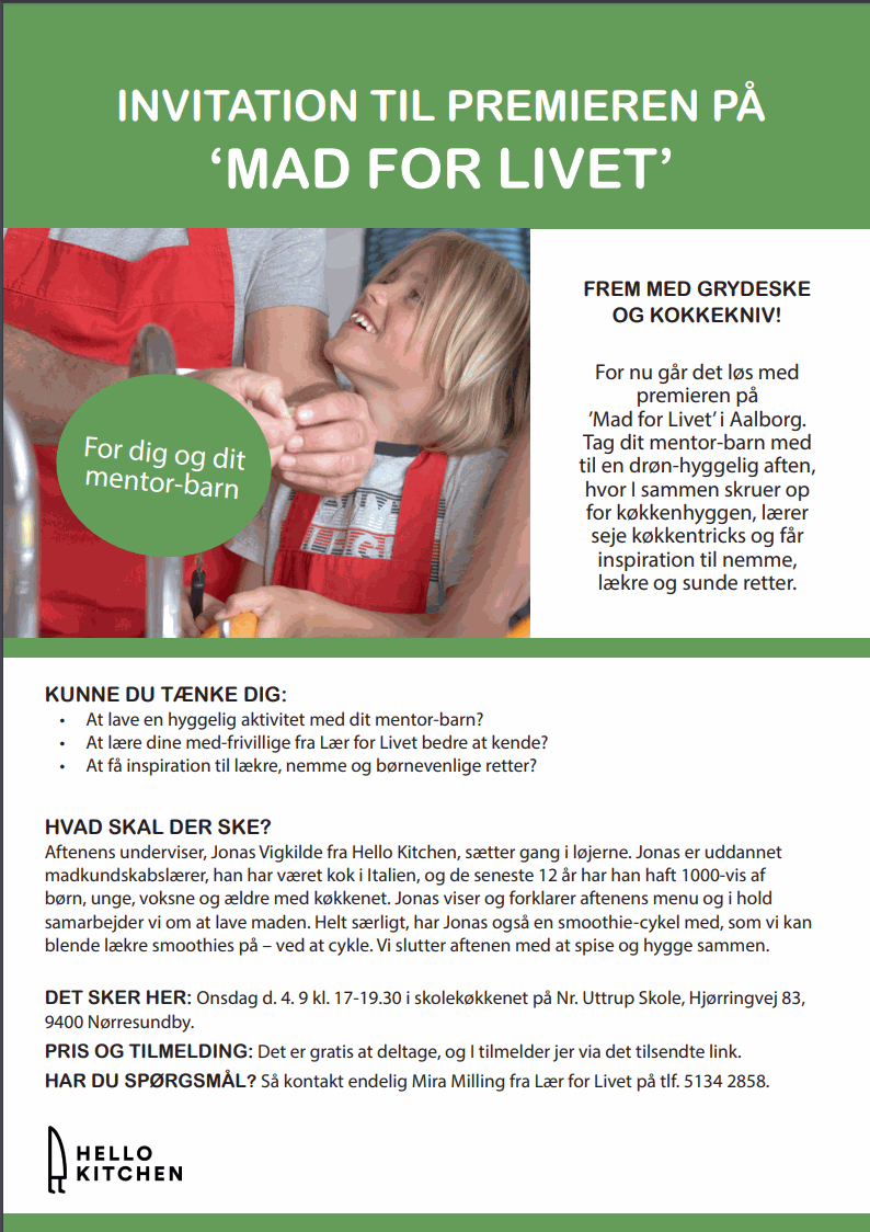 Lær for Livet har med lokale midler fra LB foreningen, fået mulighed for at afholde række madlavningsevents sammen med Hello Kitchen på Nr. Uttrup Skole i Aalborg.