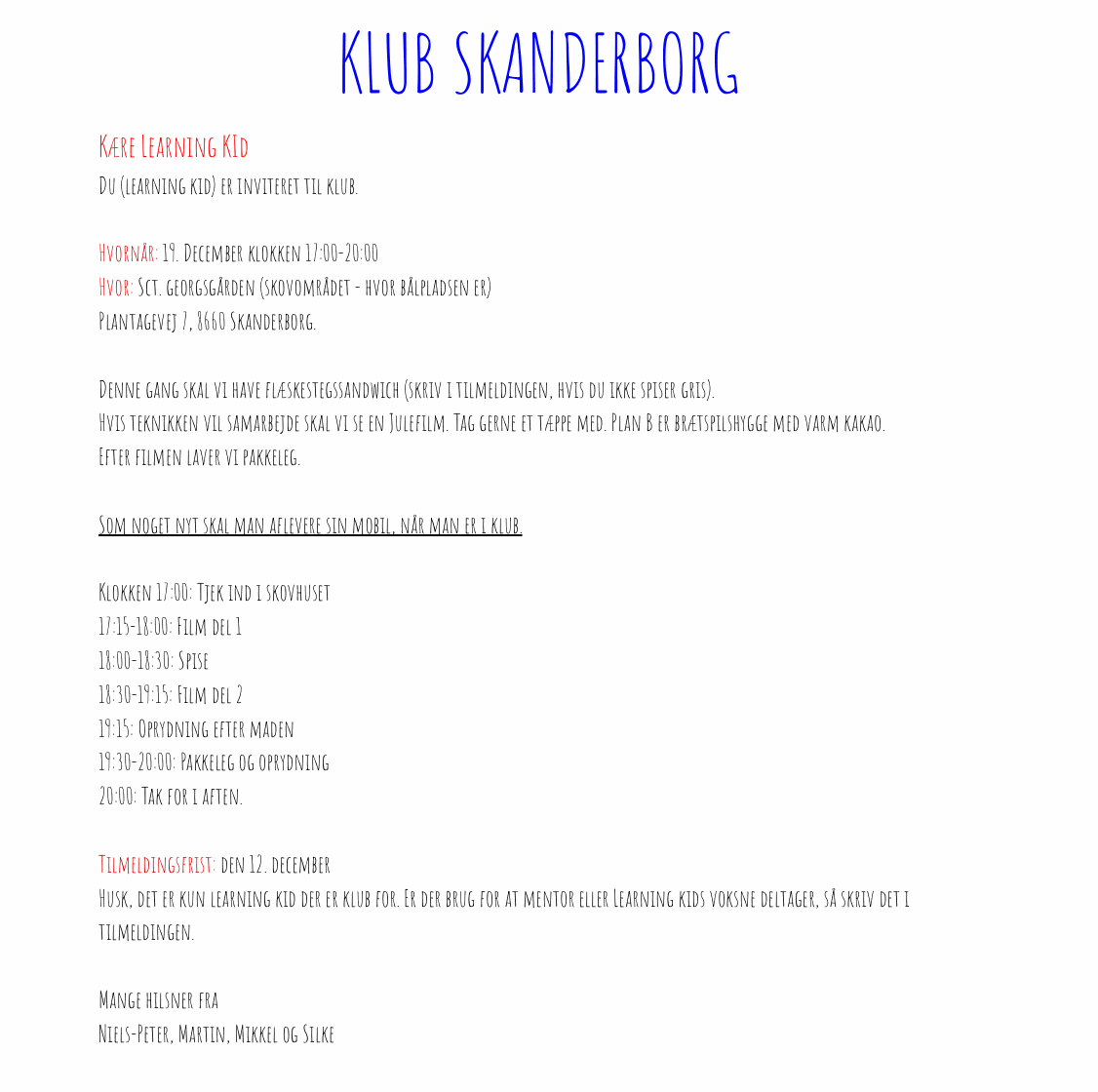 Klub Skanderborg: Film og julehygge med flæskestegssandwich (eller alternativ) og varm kakao